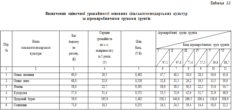 Засвоєння процедури визначення оціночної урожайності основних сільськогосподарських культур